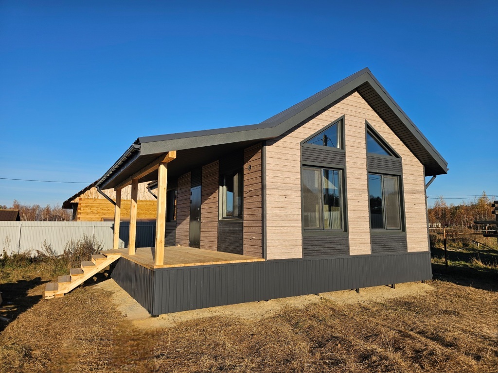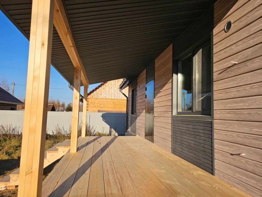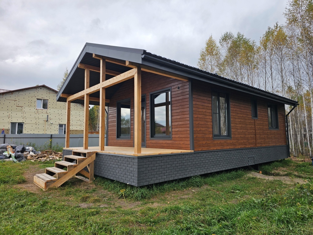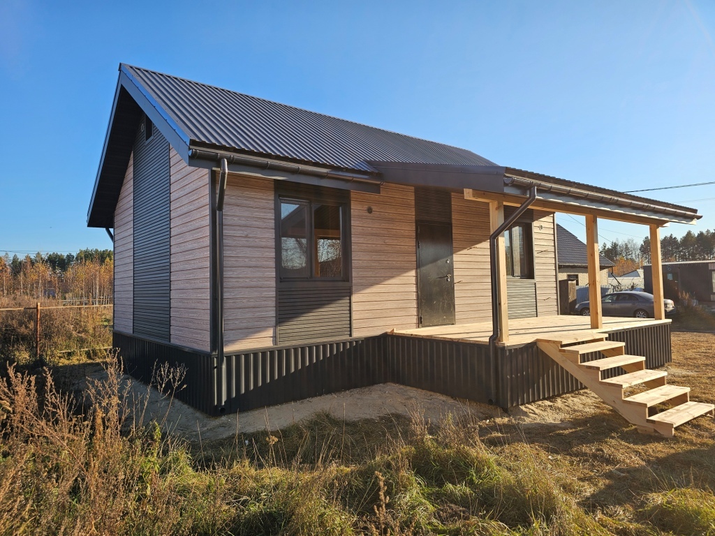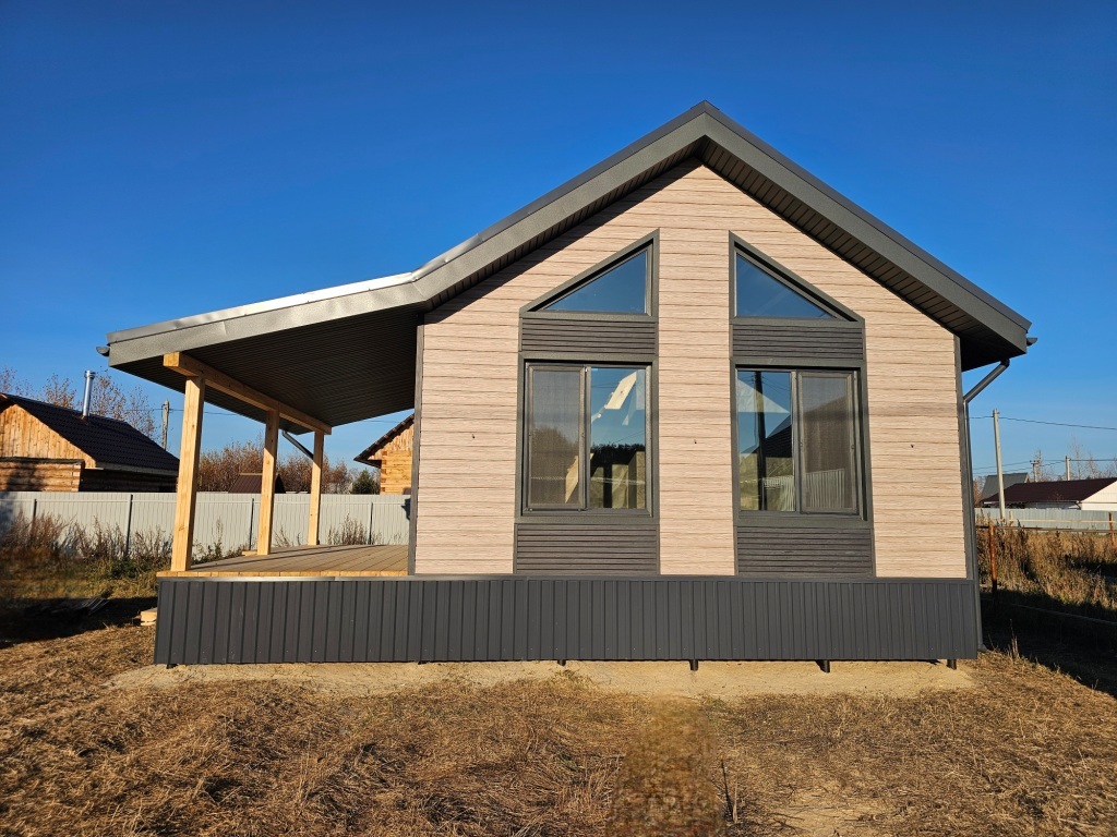Построили одноэтажный каркасный дом 9*8м в г. Тюмени (СНТ Торфяник-1) с баней и открытой террасой