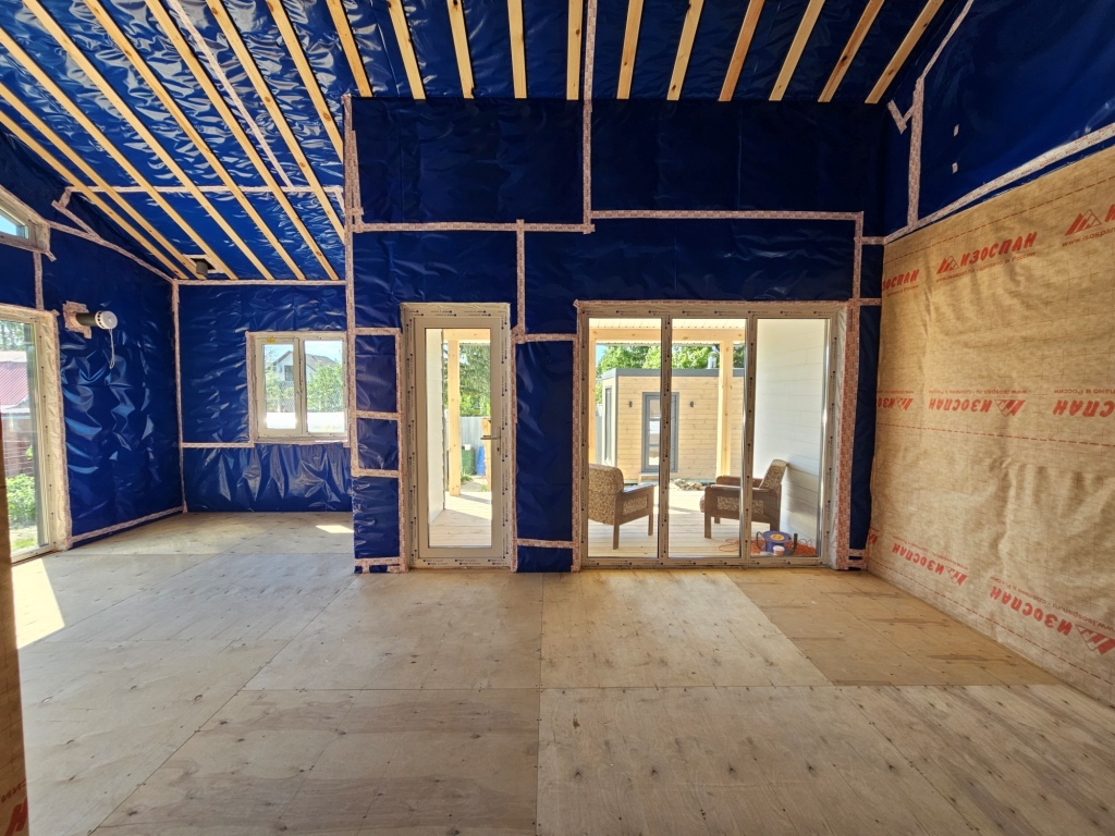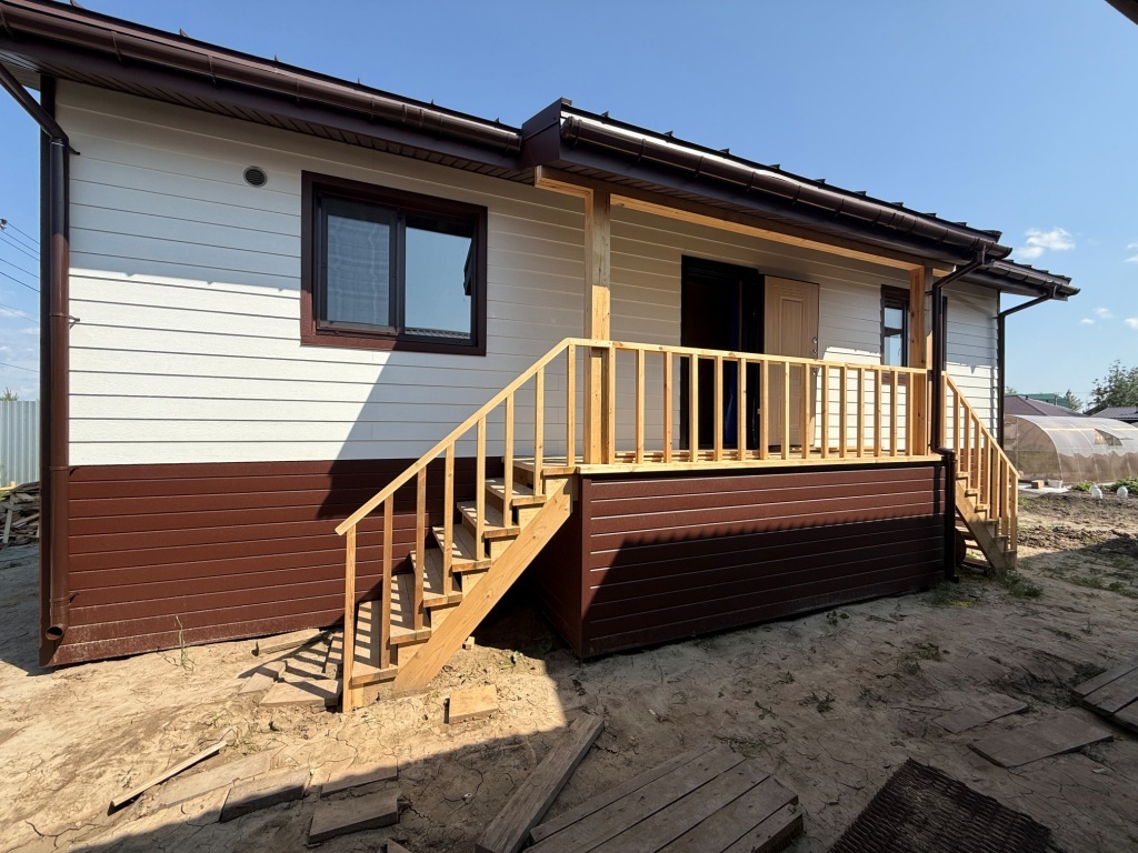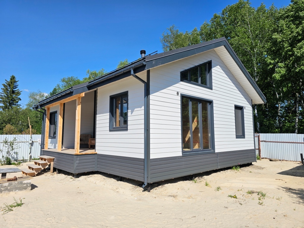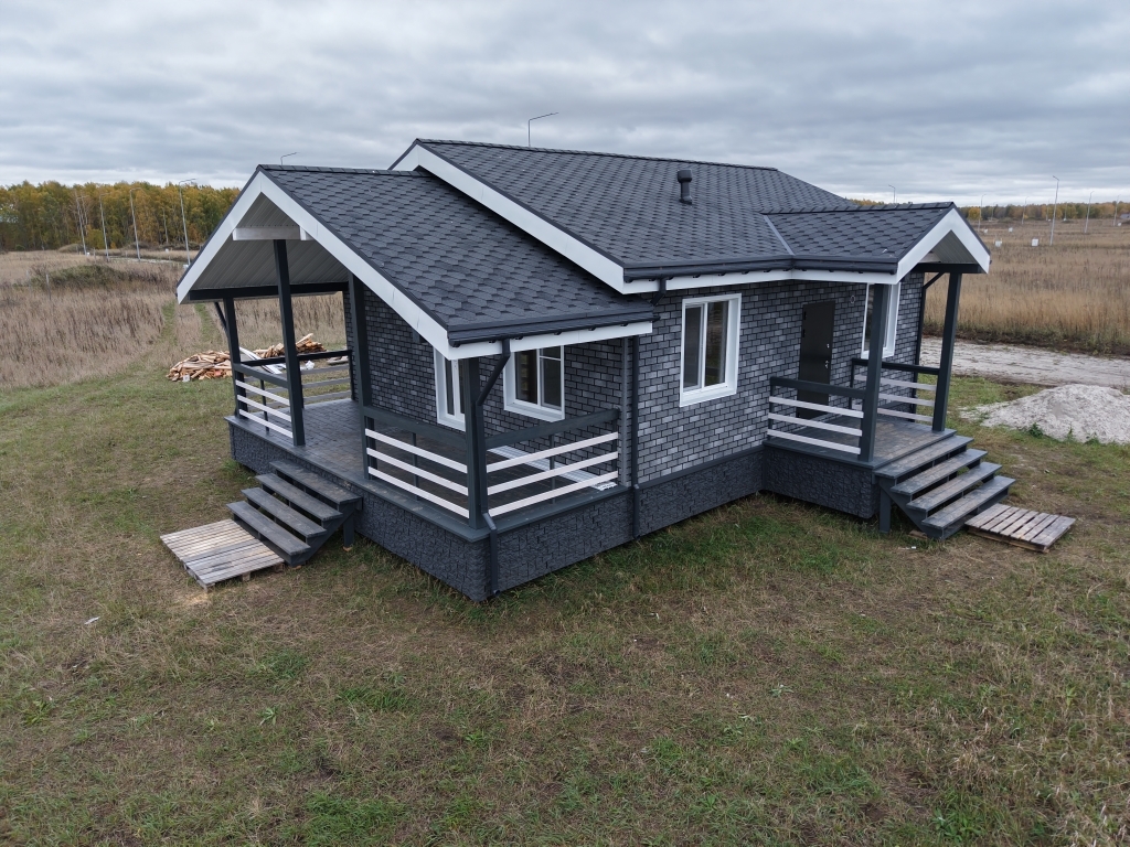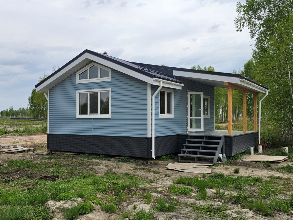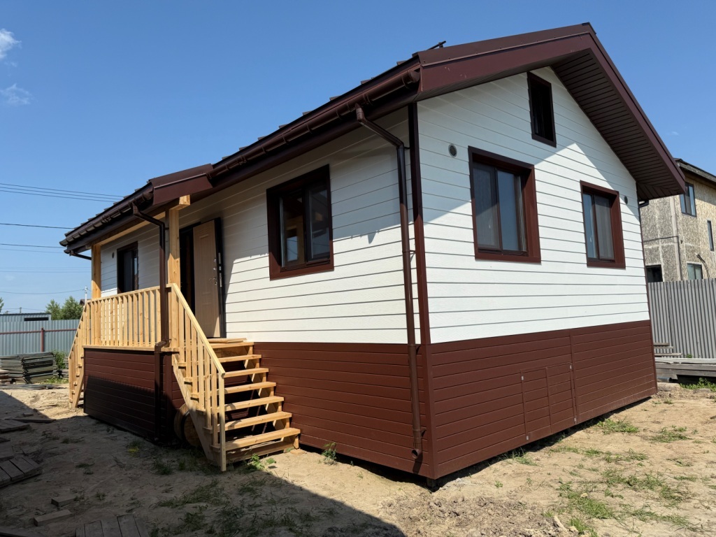 Построили одноэтажный каркасный дом 9*8м в г. Тюмени (СНТ Торфяник-1) с баней и открытой террасой