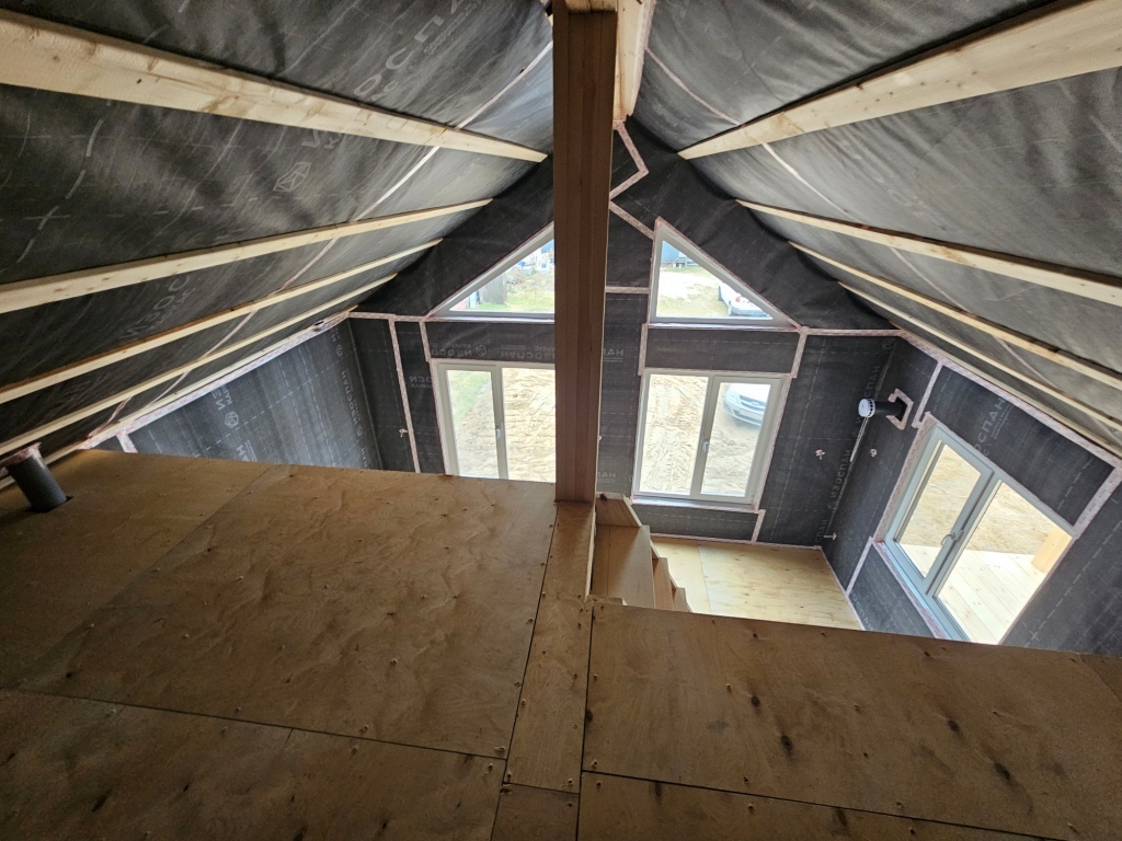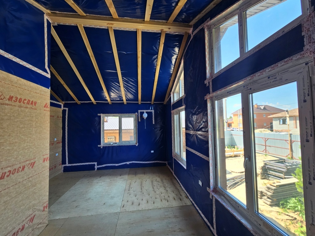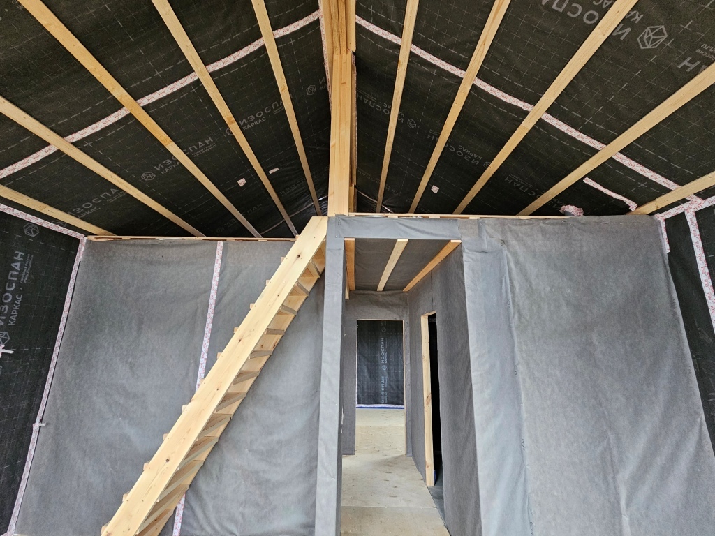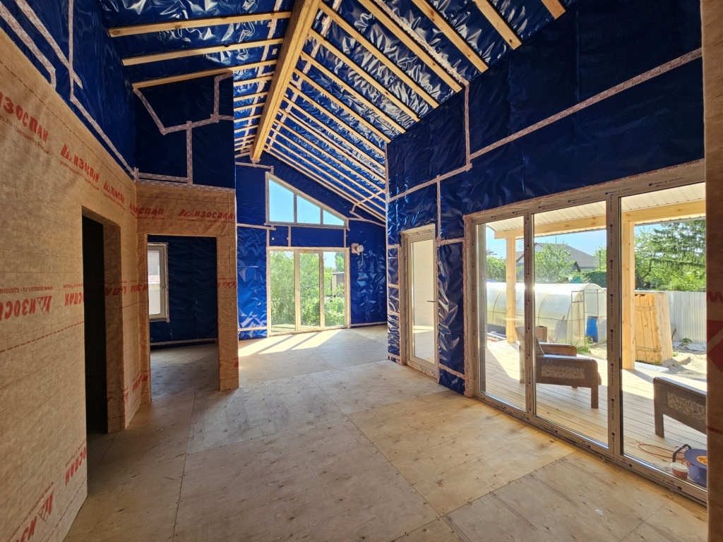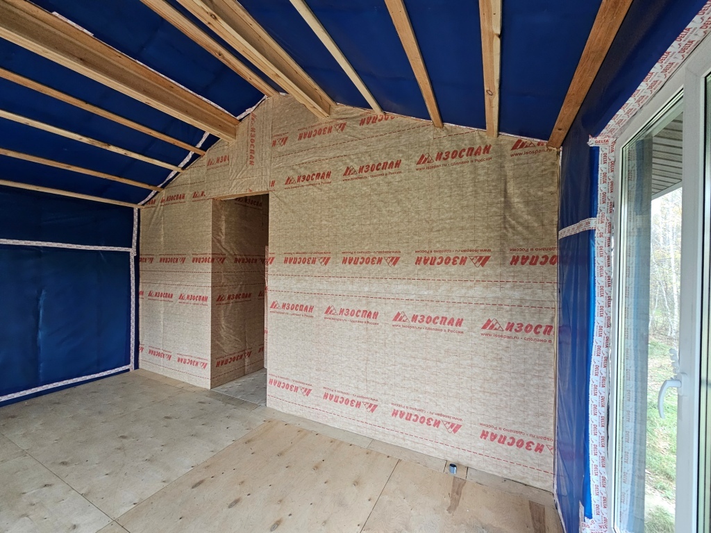 Построили каркасный дом в с.Богандинское (Килки) по Ялуторовскому тракту размером 8х8м. Дом одноэтажный, но крышу мы подготовили под дальнейшее утепление. В будущем заказчики хотят обустроить второй этаж.