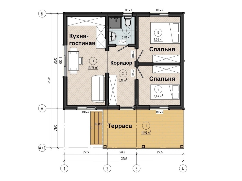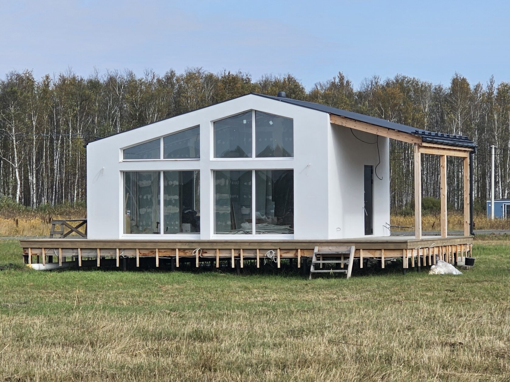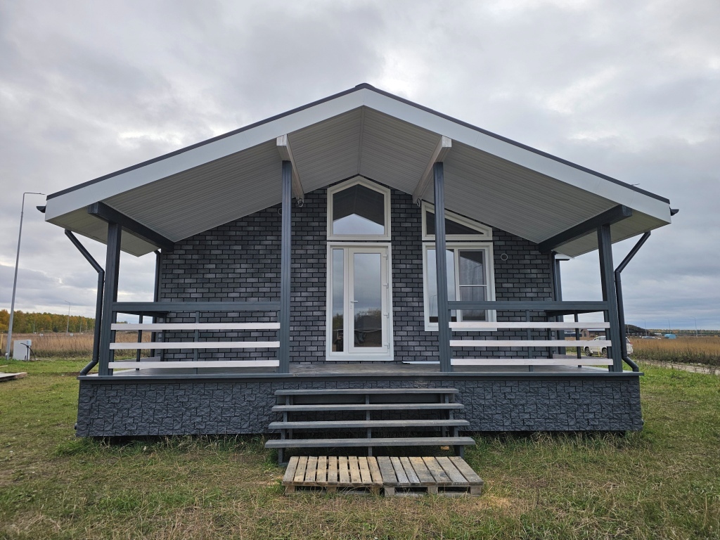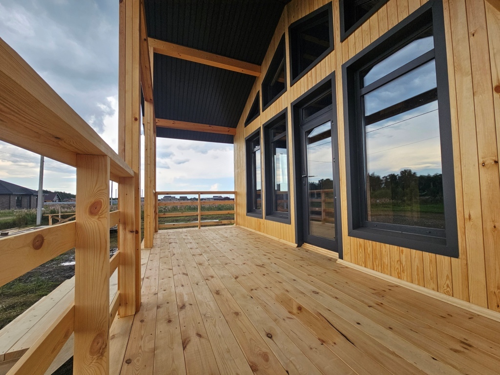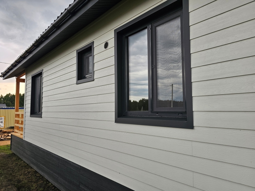 Характеристики: Размеры дома по фундаменту 6,5м х 13,5м Фундамент - винтовые сваи, длина 3м, диаметр 89мм Фасад - металлосайдинг под дерево со вставками серый графит из профнастила Все окна и дверь на террасу с ламинацией в цвете графит Входная металлическая дверь Кровля - профнастил МП 20 цвет 7024 серый графит, снегозадержатели, водостоки. Силовой каркас – строганная доска камерной сушки. 46х146мм Утепление – Эковер лайт толщина 200мм. Настил пола в доме - фанера 18мм Настил пола на террасе - доска 146х46мм сухая строганная Видеообзор по ссылкам: Ютубhttps://youtu.be/8_6JKBKxp_s?s VK видео https://vkvideo.ru/video Яндекс дзен https://dzen.ru/video