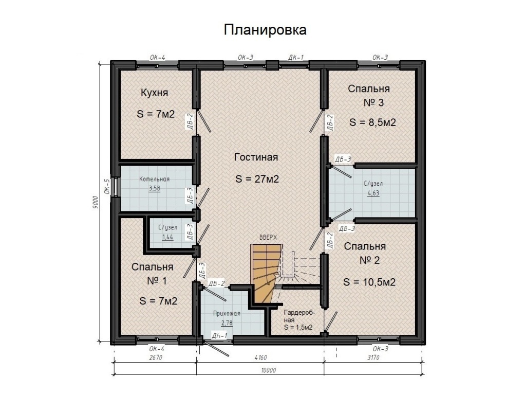 В Нижней Тавде построили каркасный дом 8х10м с тремя спальнями и кухней-гостиной. Внешнюю отделку дома сделали металлосайдингом брус цвет золотой орех 3Д. Цоколь обшили профнастилом С8 цвет камень. Установили окна с ламинация серого цвета и входную металлическую дверь с терморазрывом. На кровлю постелили металлочеремцу монтеррей цвет 7024 серый графит. Установили снегозадержатели с двух сторон, ПВХ водостоки. Карнизы и потолок на крыльце подшили ПВХ софитом серого цвета. Внутреннюю отделку сделали гипсокартоном 12.5мм. Планировка: кухня-гостиная S= 20,5м2. спальня 1 S= 10,3м2, спальня 2 S= 8,3м2, спальня 3 S= 13,5м2, санузел S=3м2, котельная S=3м2, крыльцо под общей кровлей S=3,8м2. Этот дом построили по семейной ипотеке с использованием эскроу счёта.